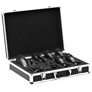 The Drum Set Session I is a high-performance drum microphone set and the ideal all-in-one starter kit that delivers an impressive combination of performance and value. With seven microphones and accessories packed in a durable aluminum carrying case, it provides all the essentials needed to capture a complete drum set. It can also be used for miking percussion, bass and guitar amps, brass, woodwinds and other instruments. All microphones are from the Perception Live series and feature a durable metal casing, rugged spring steel microphone grill, scratch-resistant finish and high maximum SPL capabilities. The set contains: 1 x P2 bass drum microphone, 2 x P17* for overheads, and 4 x P4 for toms and snare. *The P17 is technically identical to the P170 and is not available as a single unit.