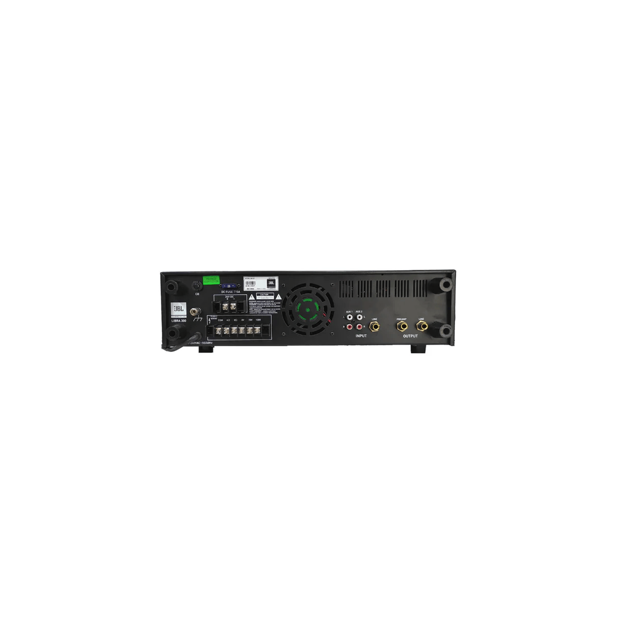 JBL Libra 300 - Power Amplifier with Mixer, USB and Bluetooth The JBL Libra 300 Mixer Amplifier with USB and BT. The JBL Libra 300 mixer amplifier is a professional tool with a sleek industrial look, designed and built for demanding commercial sound applications. The latest Drive Core technology from Crown is built in, which significantly reduces size and weight, and all amps are highly efficient, fanless, and simple to install and operate. Libra 300Features: Supports portable and desktop installation, for both outdoor and indoor use Multiple inputs for speeches, music, paging, etc. Extendable with its preamp/line output Easy to expand at large-scale venues – Scalability with the preamp/line output for Crown amplifiers for larger applications Portable Design Overload & low voltage protection For various PA applications AC & DC Power Supply AC power supply to ensure the running of system when power is switched off, DC power supply for outdoor usage.