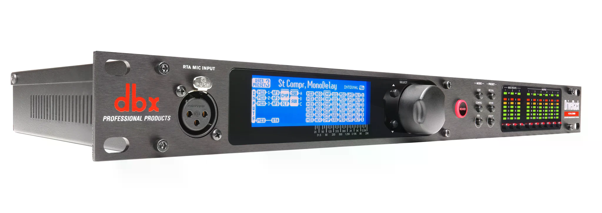 All the processing needed to supercharge your sound system. Now with complete control from your mobile device. dbx took the dominant DriveRack® 260, improved its features, and added more. The result? The 3 input, 6 output DriveRack VENU360. The VENU360 provides all the processing and flexibility you need between your mixer and amplifiers to optimize and protect your loudspeakers. With the latest advancements in dbx’s proprietary AutoEQ™ and AFS™ algorithms, additional input channels, ethernet control via an Android,® iOS,® Mac,® or Windows® device, and updated wizards, the DriveRack VENU360 continues the DriveRack legacy of great-sounding, powerful, and affordable loudspeaker management processors, for a whole new generation. AutoEQ™ New, improved AutoEQ algorithm ensures an extremely accurate, fast, and non-intrusive automatic EQ experience. With a RTA Mic “listening” to your room, the updated DriveRack VENU360 AutoEQ algorithm sets speaker levels and room EQ automatically in a matter of seconds using sine sweeps. This means room adjustments can now be made very quickly, without subjecting the audience to annoying, lengthy broadcasts of pink noise. The AutoEQ is now located in the output processing stage, which means independent sections of a system can be equalized automatically. This allows AutoEQ to be used on the FOH system as well as the stage monitors, zones and tower delays! Enhanced AFS™ Feedback Elimination Enhanced AFS™ algorithm for faster, more precise feedback elimination, without adversely affecting your system’s tone. Nothing turns audiences away like annoying and potentially painful audio feedback. Fortunately, dbx engineers have revisited their already-stellar Advanced Feedback Suppression algorithm and made it work even better. The DriveRack VENU360 listens for and anticipates feedback and automatically removes it before it even has a chance, while never altering your sound. Updated Wizard Setup Functions Updated Wizards make initial set up easy, while ensuring speaker tunings and other settings are up-to-date. Wizard functions in the DriveRack VENU360 guide you through easy, step-by-step processes to help you get the most from your loudspeaker system. The Wizards help you configure routing, level balancing, AutoEQ, Advanced Feedback Suppression, and provide access to updated speaker tunings – available for most major speaker brands. The addition of a Monitor Wizard makes it easy to configure and optimize stage monitors. Mobile Control Connect to the DriveRack VENU360 through your local network with your Android, iOS, Mac, or Windows device to customize the sound of your loudspeaker system so it sounds and performs optimally. The app lets you directly manipulate the Compressor, Graphic EQ, Parametric EQ, Crossover settings, Speaker profiles, and more with its attractive, easy-to-use graphical user interface.