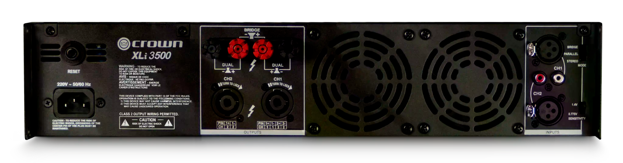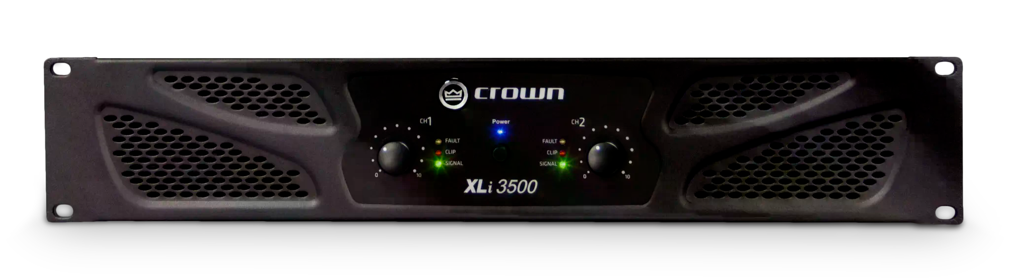 The XLI Series of power amplifiers from Crown® represents a new era in affordable, quality power amplification. All four models in the series are powerful, rugged and reliable. They are suited for musicians, DJs, and entertainers as well as houses of worship, discos, and pubs. The four models in the series are the XLi800, XLi1500, XLi2500 and XLi3500. They are identical except for output power. Features include RCA and XLR inputs, user selectable input sensitivity of 0.755V or 1.4V, Speakon® and binding post outputs, stereo/parallel/bridge-mono mode, power/fault/signal presence/clip indicators, forced-air cooling; and protection against shorts, no-load, on/off thumps and radio-frequency interference. With over six decades of experience designing and building rock-solid products, Crown is the standard in amplifier technology. So check out the affordable Crown XLI Series. They are a powerful argument for quality and value! Features Stereo/parallel/bridge-mono mode User selectable input sensitivity - 0.775V and 1.4V Efficient forced-air cooling prevents excessive thermal buildup Electronically balanced RCA & XLR inputs; binding post and Speakon outputs Two level controls, power switch, power LED, and six LEDs which indicate signal presence, clip and fault for each channel Protection against shorts, no-load, on/off thumps and radio-frequency interference