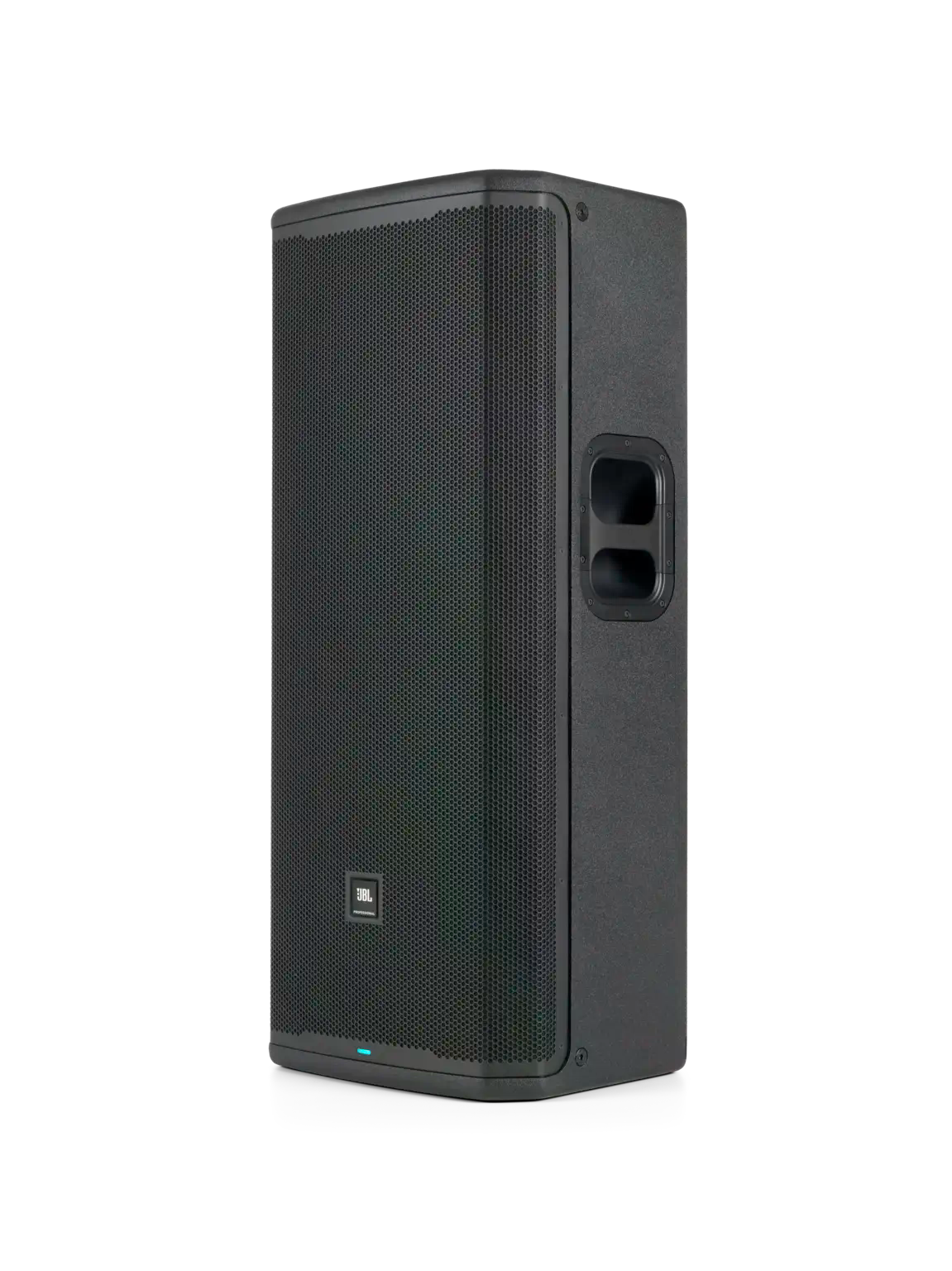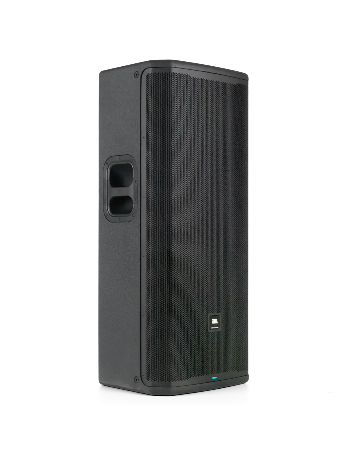 The JBL PRX925 takes professional portable PA performance to a new level with advanced acoustics, comprehensive DSP, unrivaled power performance and durability, and complete BLE control via the JBL Pro Connect app. This powered, two-way, dual 15-inch system delivers clarity and definition at maximum volume as well as unprecedented SPL and low-frequency performance making it ideal for support of larger spaces that can utilize more low-end support. PRX925’s class-leading DSP package, accessible via an onboard color LCD or the JBL Pro Connect app, features 12-band parametric EQ for system tuning; integrated dbx Automatic Feedback Suppression, and more. The JBL Pro Connect app empowers Android or iOS mobile device control over mixer and DSP functions, including management of a wide range of settings and effects. Up to 10 JBL Pro Connect app-enabled systems and speakers can be controlled. The PRX925 is designed to withstand the rigors of the road. Enclosed in an 18 mm birch cabinet with optimized bracing, it delivers smooth, accurate low-end response. PRX900 systems are reinforced by industry-leading test and validation protocols, and include an unprecedented 7-year warranty. Features Transducers: Dual 915H 15” ferrite magnet woofers JBL 2408H-1 1.5” poly-annular diaphragm compression driver Updated JBL image control waveguides improve dispersion FEA flared port design reduces air noise and distortion Low-noise, low-distortion gain staging design Lightweight, efficient Class D amplification Power: 2,000 watts peak/1,000 watts RMS Frequency response: 43 Hz - 20 kHz @4pi (-10 dB); 54 Hz - 17 kHz @4pi (-3 dB) Dispersion: 90° x 50° Max SPL: 137.7 dB Crossover frequency: 1,700 Hz Color LCD screen provides access to comprehensive DSP suite DriveRack Technology includes Automatic Feedback Suppression, system limiter and 180ms of speaker delay in 100-microsecond intervals for precise time-aligned systems Optimized presets for pairing full-range speakers with subwoofers JBL Pro Connect app allows full system control of up to 10 JBL Pro Connect app-enabled speakers and systems 18 mm birch cabinet with optimized bracing delivers smooth, accurate low-frequency response I/Os: 2 XLR balanced Combo jacks 1 3.5mm aux 2 XLR-M loop-through 1 XLR-M Mix out Two integrated side handles Suspension/mounting: single 36mm pole socket, eight M10 suspension points Quiet fanless operation Ultra-low system latency: 1ms Net weight: 37.3 kg (82.2 lbs); gross weight: 43 kg (94.7 lbs) Dimensions: 1058.5 mm x 446 mm x 434 mm (41.6 in x 17.5 in x 17.1 in) (H x W x D) Shipping dimensions: 1110 mm x 535 mm x 535 mm (43.7 in x 21 in x 21 in) (H x W x D)