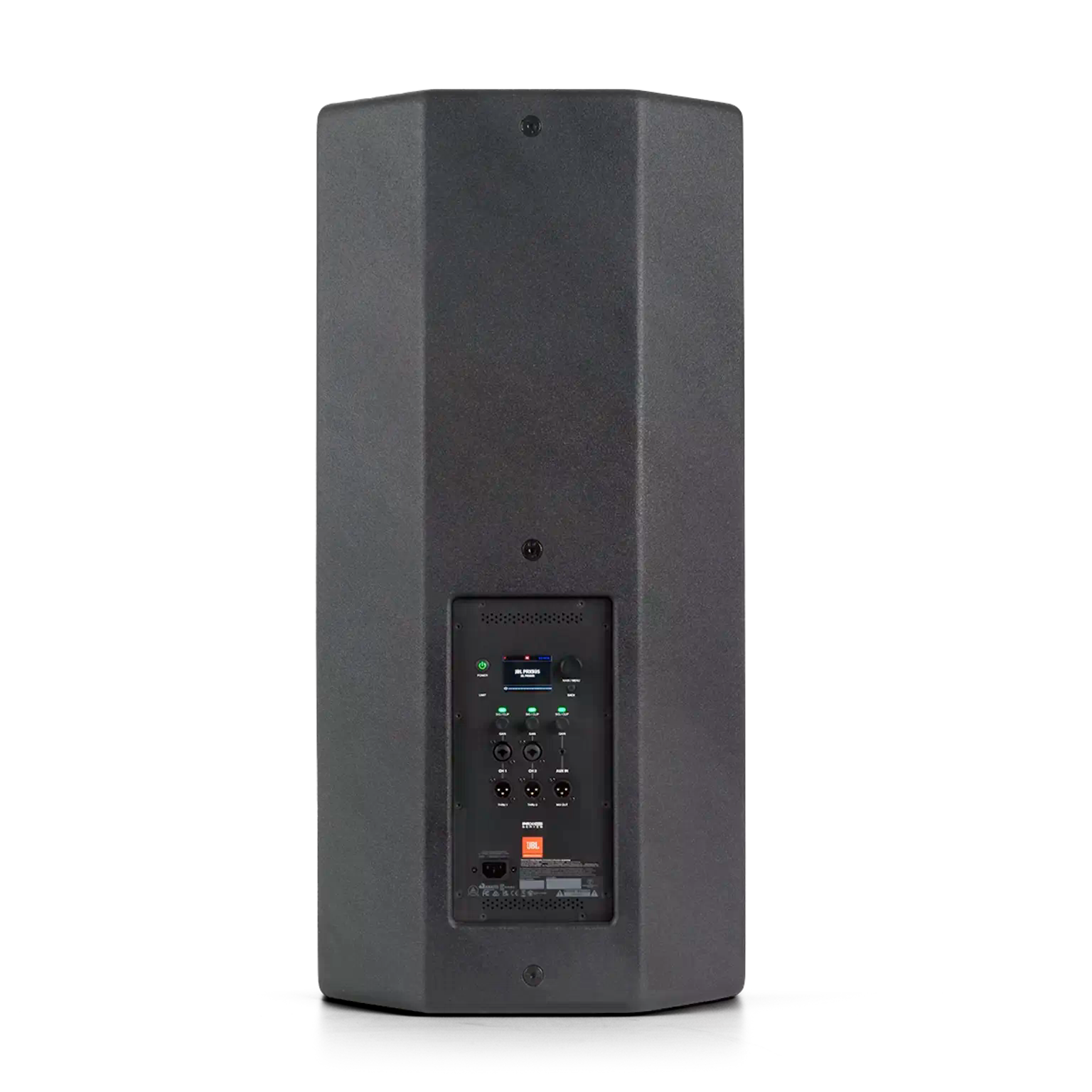 The JBL PRX935 takes professional portable PA performance to a new level with advanced acoustics, comprehensive DSP, unrivaled power performance and durability, and complete BLE control via the JBL Pro Connect app. This powered, three-way, single 15-inch system delivers exceptional mid-frequency range performance and vocal clarity at maximum volume. This makes it an ideal system for houses of worship, corporate A/V providers, or anyone that needs to provide powerful, room-filling sound. PRX935’s class-leading DSP package, accessible via an onboard color LCD or the JBL Pro Connect app, features 12-band parametric EQ for system tuning; integrated dbx Automatic Feedback Suppression, and more. The JBL Pro Connect app empowers Android or iOS mobile device control over mixer and DSP functions, including management of a wide range of settings and effects. Up to 10 JBL Pro Connect app-enabled systems and speakers can be controlled. The PRX935 is designed to withstand the rigors of the road. Enclosed in an 18 mm birch cabinet with optimized bracing, it delivers smooth, accurate low-end response. PRX900 systems are reinforced by industry-leading test and validation protocols, and include an unprecedented 7-year warranty. Features Transducers: 916G 15” ferrite magnet woofer 196H 6” ferrite magnet transducer JBL 2408H-2 1.5” poly-annular diaphragm compression driver Updated JBL image control waveguides improve dispersion FEA flared port design reduces air noise and distortion Low-noise, low-distortion gain staging design Lightweight, efficient Class D amplification Power: 2,000 watts peak/1,000 watts RMS Frequency response: 40 Hz - 20 kHz @4pi (-10 dB); 46 Hz - 18 kHz @4pi (-3 dB) Dispersion: 90° x 50° Max SPL: 136.1 dB Crossover frequency: 542Hz; 2100Hz Color LCD screen provides access to comprehensive DSP suite DriveRack Technology includes Automatic Feedback Suppression, system limiter and 180 ms of speaker delay in 100-microsecond intervals for precise time-aligned systems Optimized presets for pairing full-range speakers with subwoofers JBL Pro Connect app allows full system control of up to 10 JBL Pro Connect app-enabled speakers and systems 18 mm birch cabinet with optimized bracing delivers smooth, accurate low-frequency response I/Os: 2 XLR balanced Combo jacks 1 3.5mm aux 2 XLR-M loop-through 1 XLR-M mix out Two integrated side handles Suspension/mounting: single 36mm pole socket, eight M10 suspension points Quiet fanless operation Ultra-low system latency: 1ms Net weight: 36.6 kg (80.6 lbs); gross weight: 42 kg (92.5 lbs) Dimensions: 938.5 mm x 446 mm x 434 mm (36.9 in x 17.5 in x 17.1 in) (H x W x D) Shipping dimensions: 990 mm x 535 mm x 535 mm (38.9 in x 21 in x 21 in) (H x W x D)